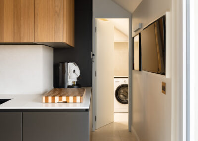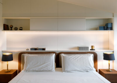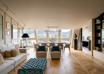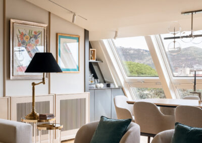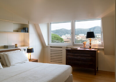 Tra cielo e terra si configura così non solo come una residenza di prestigio, ma come un manifesto di abitare contemporaneo, dove l’architettura d’interni riesce a domare le pendenze del tetto per creare un’esperienza spaziale ariosa, colta e senza tempo.